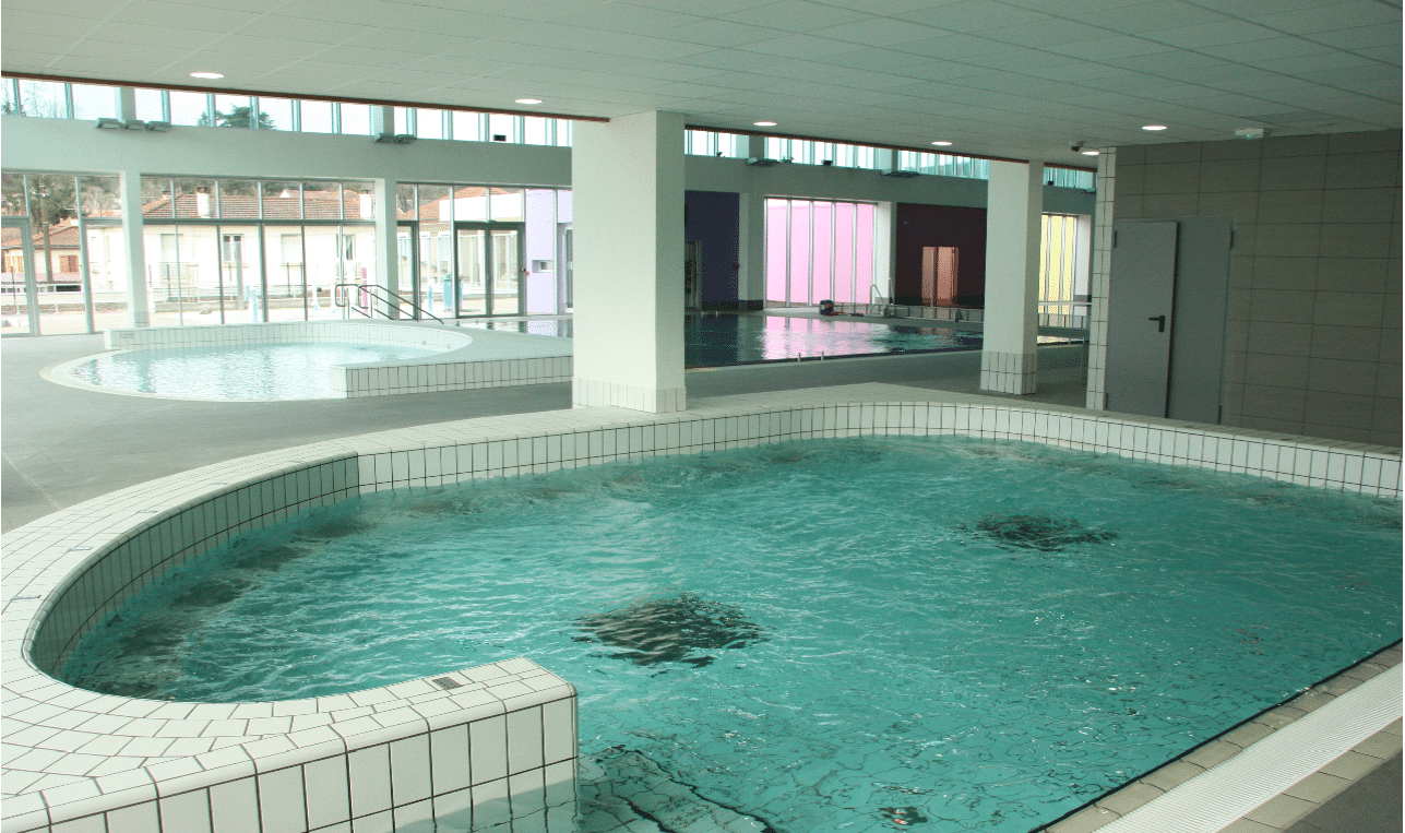 A l’intérieur:un bassin 25×12,5 ,un bassin d’apprentissage ,une pataugeoire ,un espace détente avec Jacuzzi ,hammam et sauna.