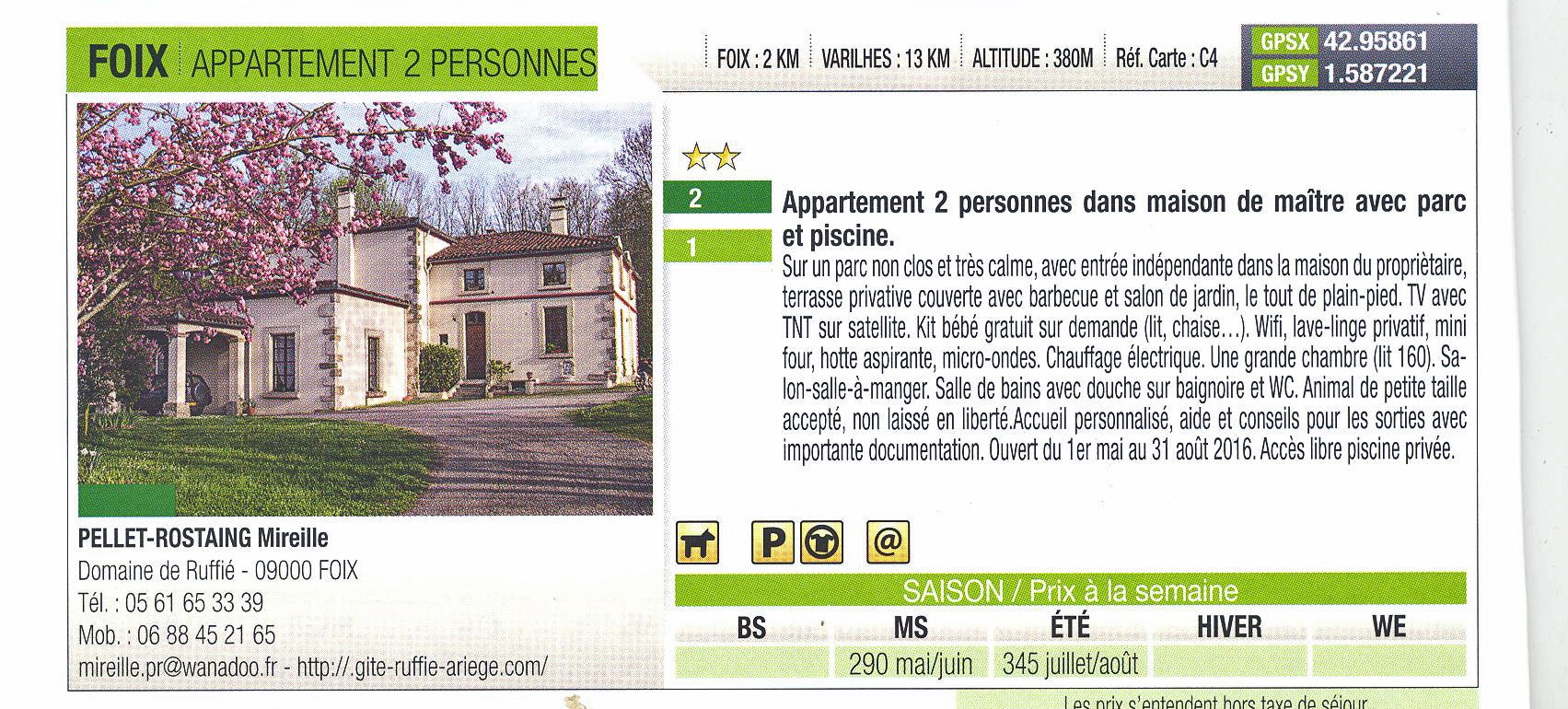 La nouvelle édition des meublés de tourismes de Foix-Varilhes vient de sortir, vous y trouverez notre meublé-gîte de Ruffié qui pourra vous accueillir cet été…
